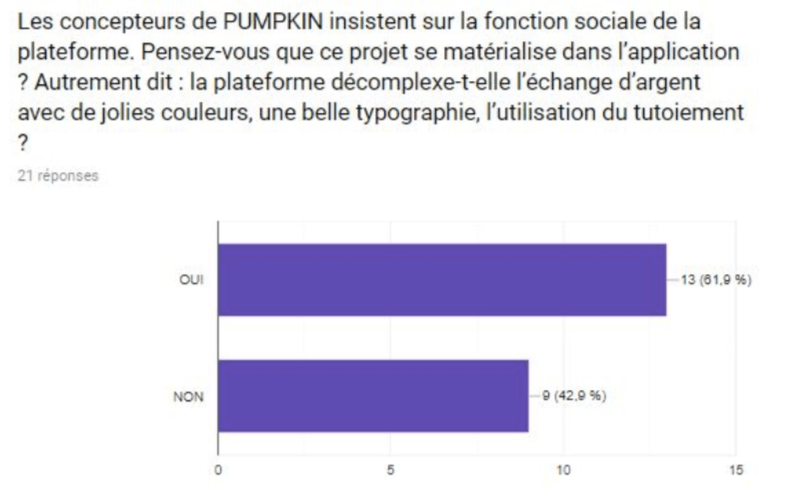 De plus, il peut-être intéressant d’observer si le discours porté par les concepteurs de Pumpkin se matérialise à travers l’application (exemple du tutoiement) et voir si les utilisateurs perçoivent ce même discours lors de leur utilisation de l’application.